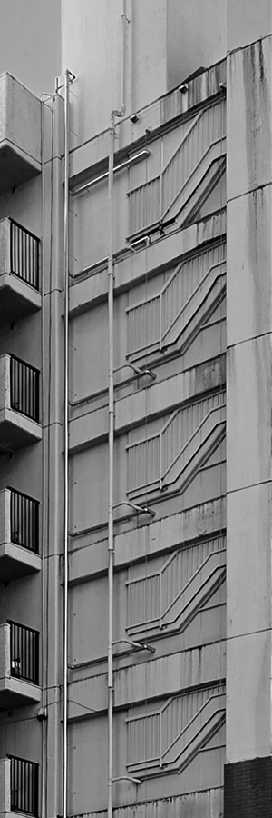 何らかの理由により屋外階段に後から壁を付けたようで、手摺等が痕跡として残されていました。
