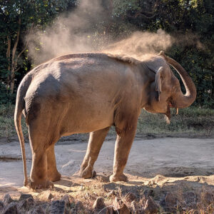 お鼻を使って器用に砂浴びをするインドゾウ。