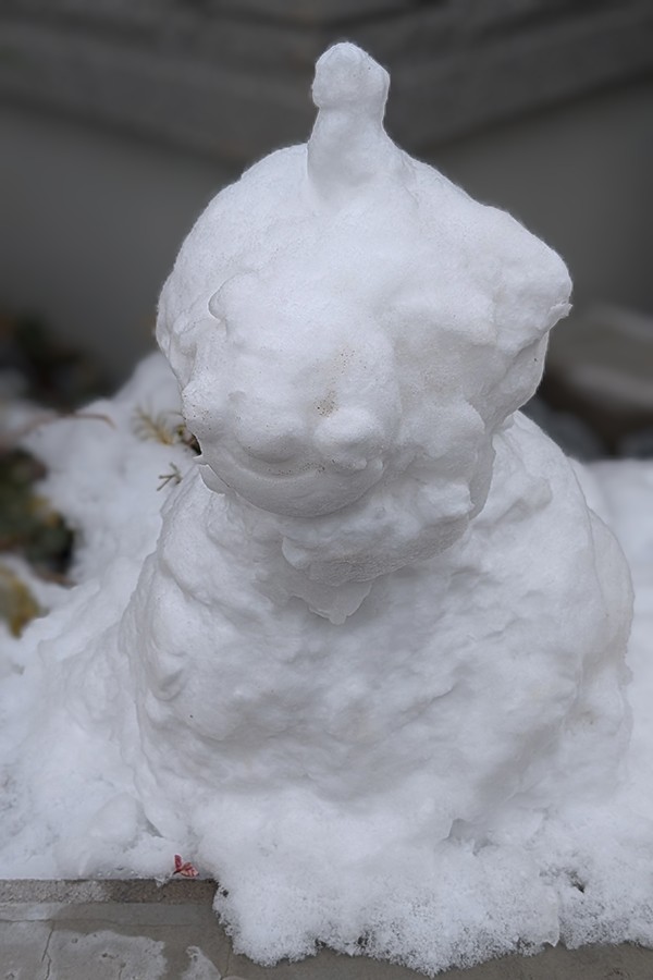 アンパンマンと思しき雪だるま。