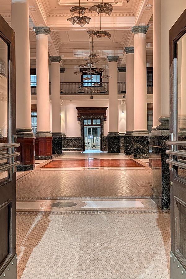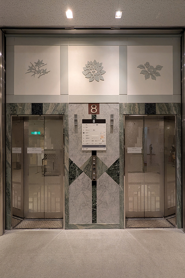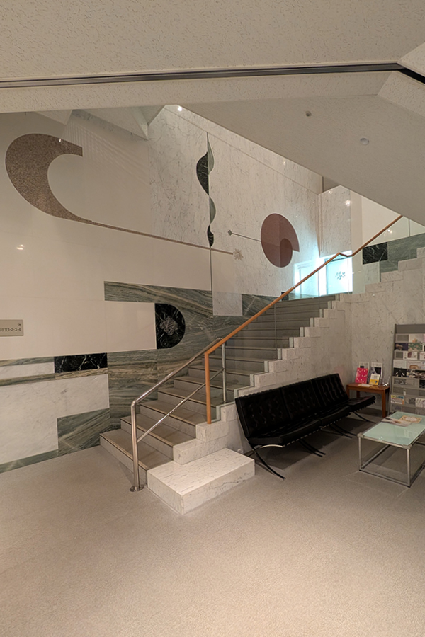 「ロックフェラー・コレクション 花鳥版画展 北斎、広重を中心に」へ(その3) 前回の続きです。 こちらは8階から7階に降りる階段。壁面の絵のような石の張り分けが素敵です。 エレベーター回りも豪華且つ可愛らしい感じ。 パンチングメタルを使った照明器具。 保存された旧銀行部分。現在はさや堂ホールとして使われているそうな。 さあ、建物を見るのは此のくらいにして、肝心の版画を鑑賞しに参りましょう。