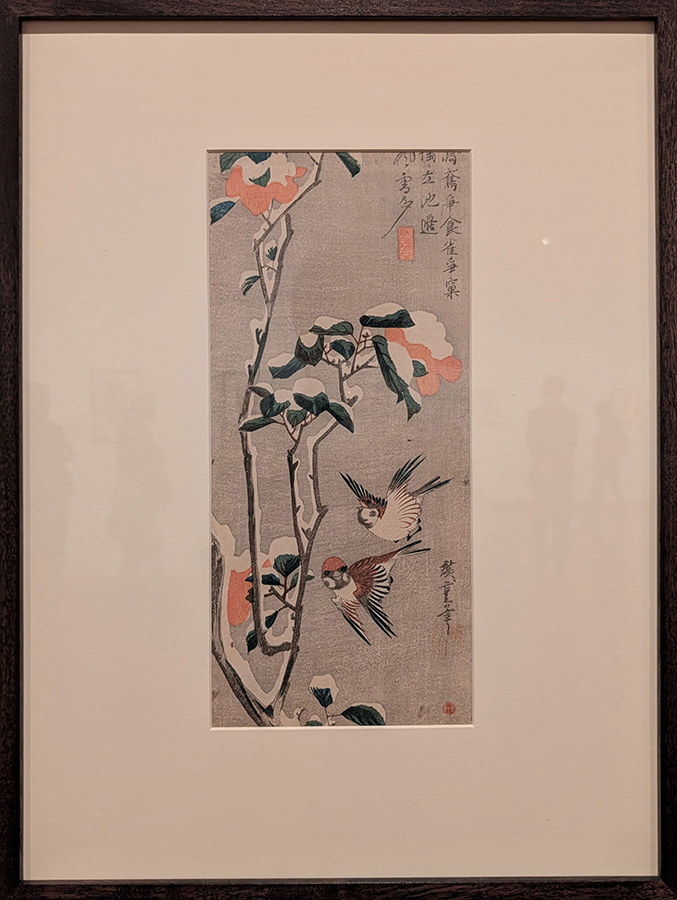 さて会場に入ると、多くの花鳥版画が展示されています。