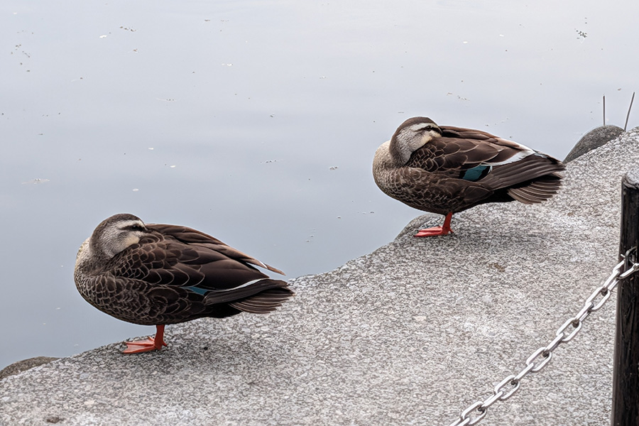 カメラを向けた途端にお休みのポーズになってしまいました、しかもシンクロ(笑)