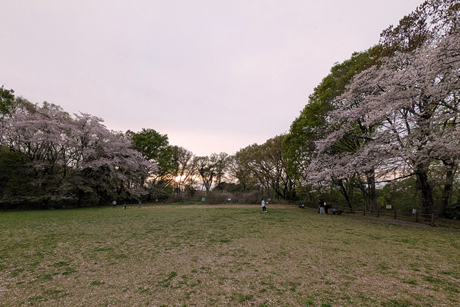 サッカーをしたり、バドミントンに興じたり、ベンチで花見を楽しんだりと、皆さんそれぞれに春の夕暮れ時を楽しんでおられました。