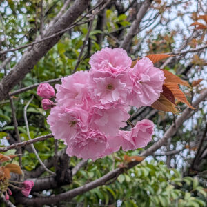 八重桜が早くも咲き始めていました(4月5日撮影)。