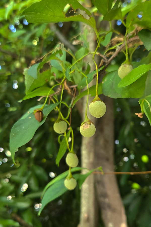 専門学校のキャンパスでは、いつの間にかエゴノキに実が生っていました。