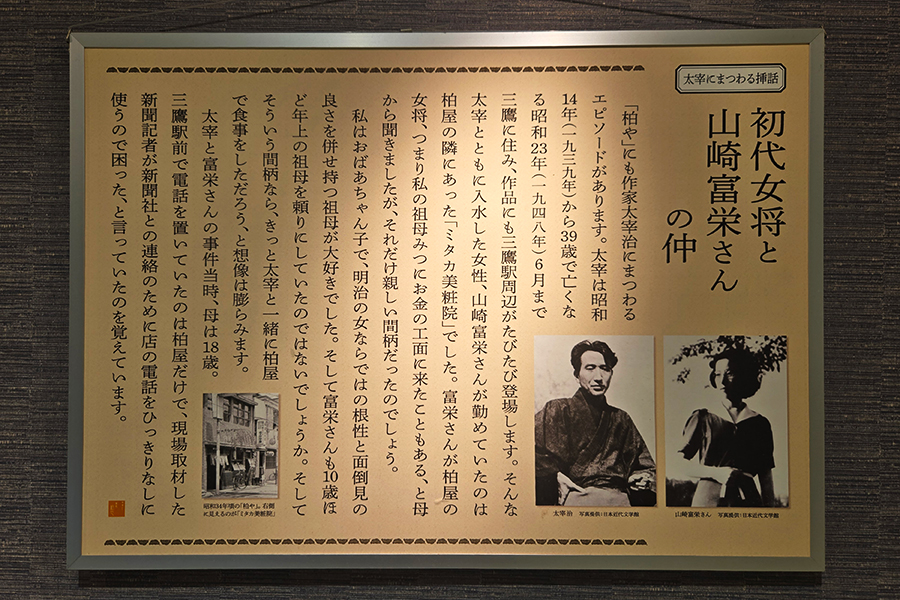 なんでも先々代の女将が太宰治の当時の愛人・山﨑富江にお金を貸してあげた事があるのだとか!