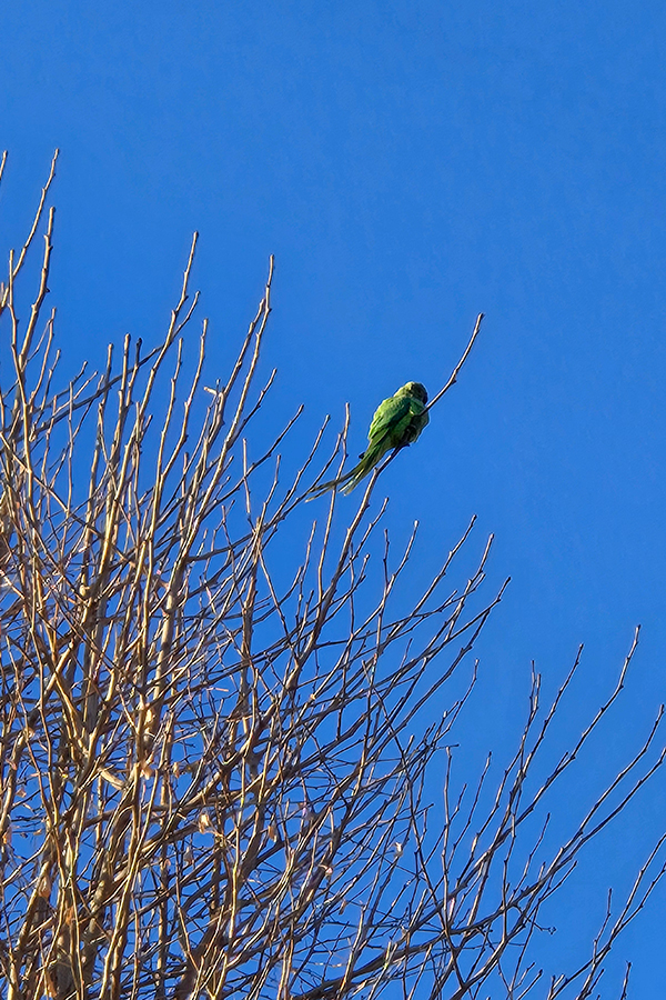 ワカケホンセイインコが居ました。参拝に来ると必ず見掛けます。