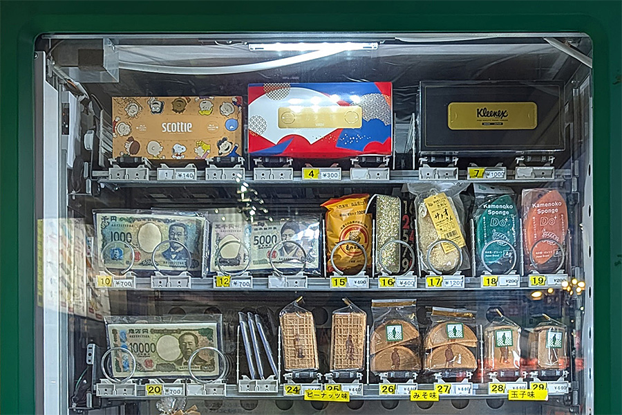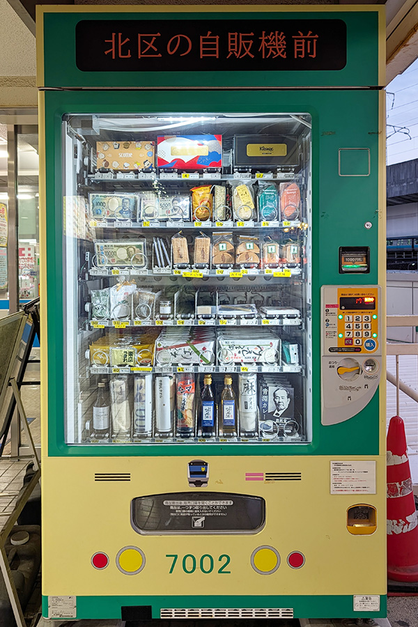 すぐ脇を走る都電荒川線(東京さくらトラム)の車両を模し、行き先は「北区の自販機前」。