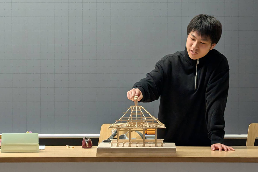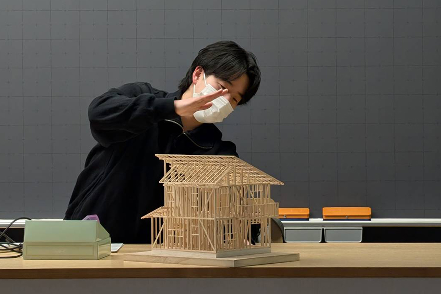 卒業設計発表会 昨日は建国記念日で祭日ながら専門学校は通常授業。 木造建築科2年生の卒業設計発表会が行われました。 A君「宝珠の形を削り出すのに4時間掛かりました」 Mさん「柱が全て拝んでおり且つ七角形なので大変でした」 I君「バルコニーの片持ち梁にテーパーを付けるのに苦労しました」 学生諸君皆、初めて作る軸組模型に苦労したようです。 皆さん、大変お疲れ様でした。