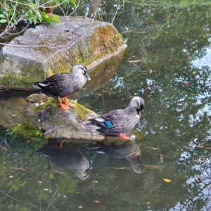 哲学堂公園へ(その1) そのまま妙正寺川沿いを歩いて哲学堂公園へ。 三が日でも開園していました。私達区民にとって大変ありがたい事です。 池には鴨の番いが。 畔(ホトリ)には磯菊(イソギク)の花が咲いていました。 花の少ない此の時期、心を癒してくれる貴重な存在であります。