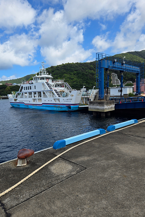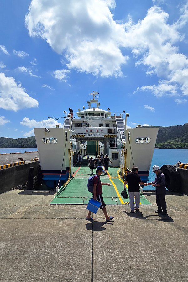 古仁屋港漁港ターミナルで本村さんと待ち合わせ、ここからカーフェリーで島へと向かいます。この船です。