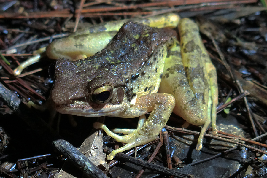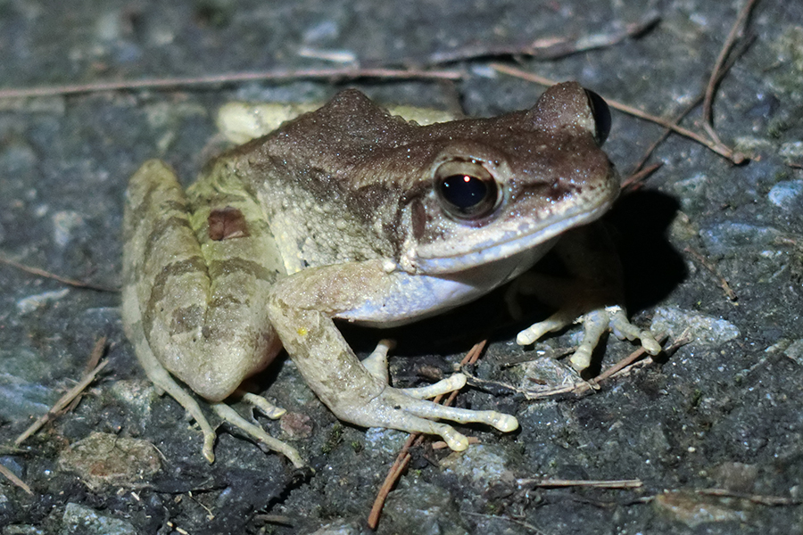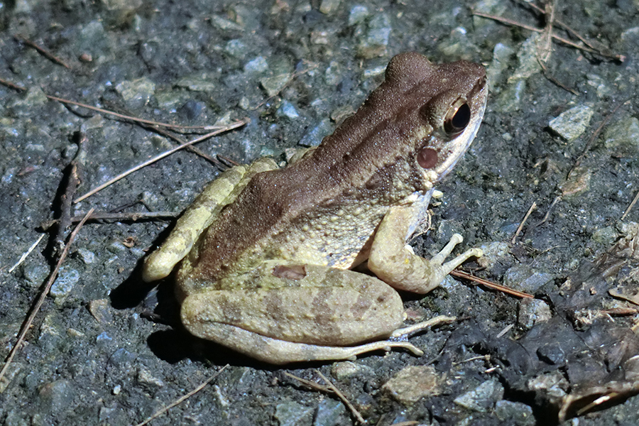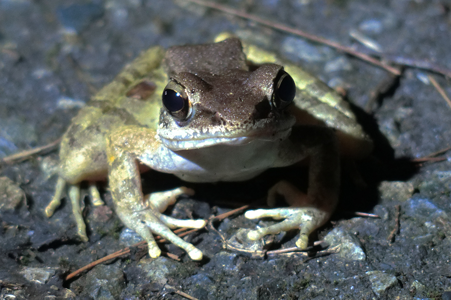 奄美大島へ(その63)ナイトツアー・奄美鼻先蛙 昨夜に続き、奄美大島旅行記その63です。 本村さんの車はライトで道を照らしながらユックリと進みます。 奄美鼻先蛙(アマミハナサキガエル)を発見! まずは斜め後ろからパシャリ。 目が何とも可愛いですね💛 続いて正面から。 更に斜め前からも1枚。 あまりに可愛くて何枚もシャッターを切ってしまいました。