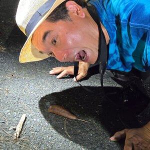 奄美大島へ(その67)ナイトツアー・ヤマナメクジ? 昨夜に続き、奄美大島旅行記その67です。 本村さんのナイトツアーは続きます。 今度は大きなナメクジを発見! 私の顔と比べて見て下さい(笑) ヤマナメクジでしょうか? これも初めて見ました。嬉しい💛