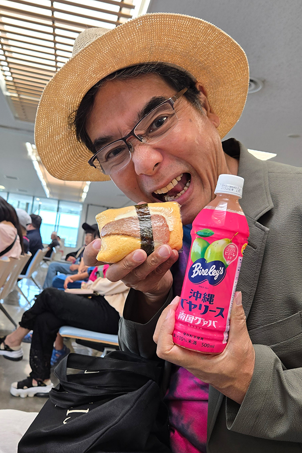待合室に座り、スパムおにぎりとグアバジュースだけの簡単な昼食。