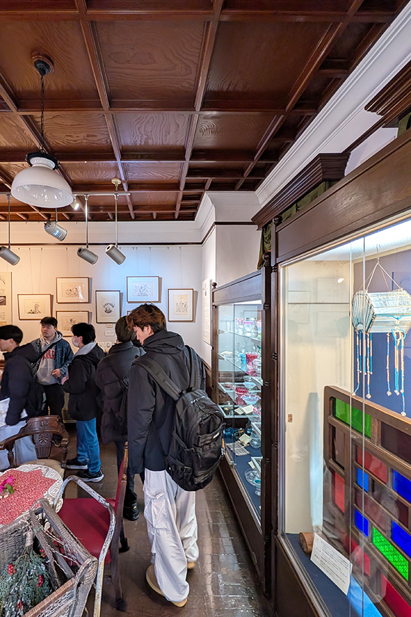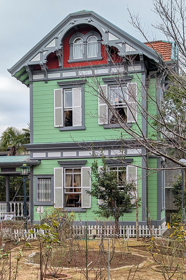 横浜 山手資料館 先述した通り専門学校木造建築科2年生と横浜の街を歩きました。 その際、私はウン十年ぶりに山手資料館の内部を見学する機会を得たのでございます。 こちらが有名な外観。 1階は床と壁が洋風、天井だけ和風の格天井になっています。 恥ずかしながらスッカリ忘れておりました。