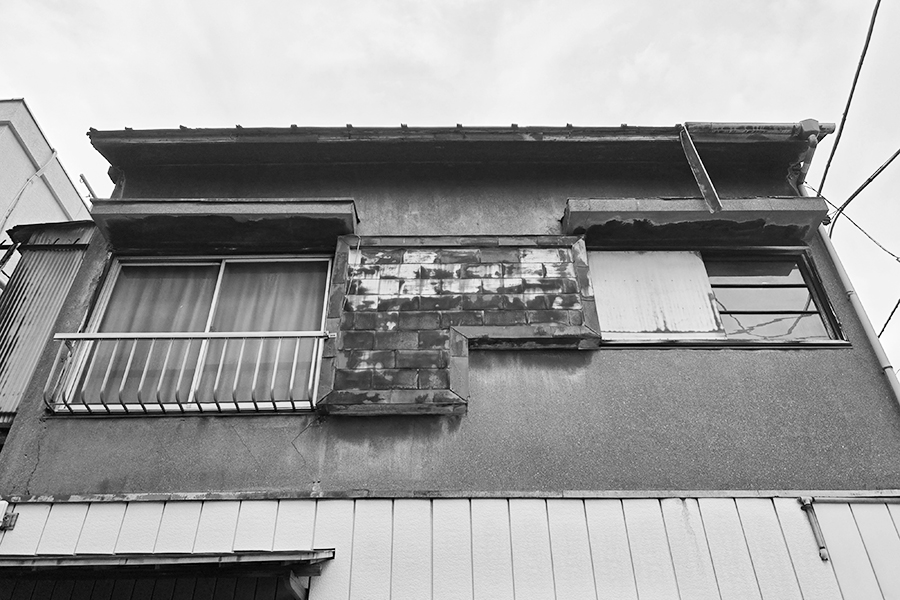 左右の大きさが違う窓の戸袋(とぶくろ・雨戸の収納場所)を一体化しているのが面白くてパシャリ。