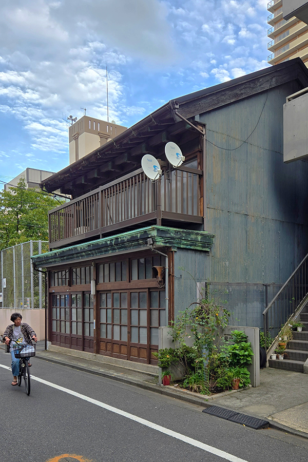 脇道に入ると、出桁造りの立派な屋根と庇に銅板張りの蛇腹をあしらった商家がありました。