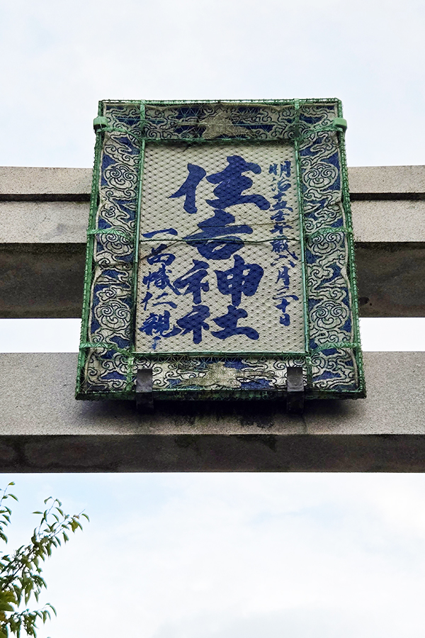 住吉神社の鳥居に掲げられた扁額は、なんと陶器製!