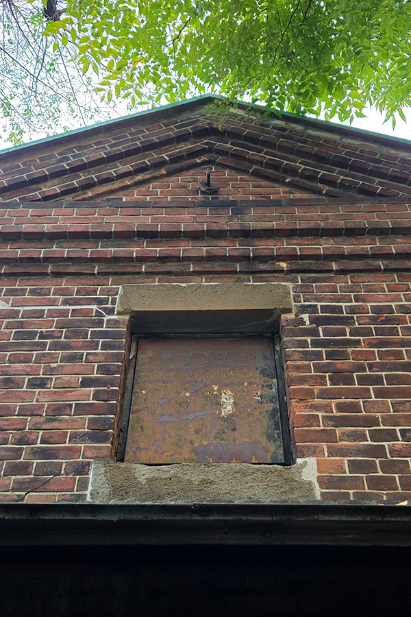 社殿の脇にあった煉瓦造の旧神輿庫。