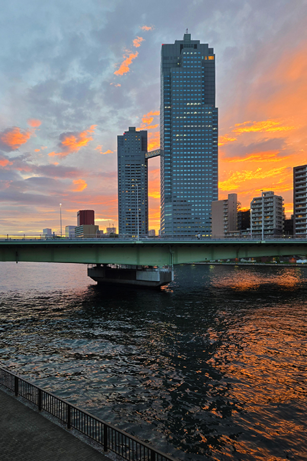 月島散歩(その8)隅田川の夕焼け