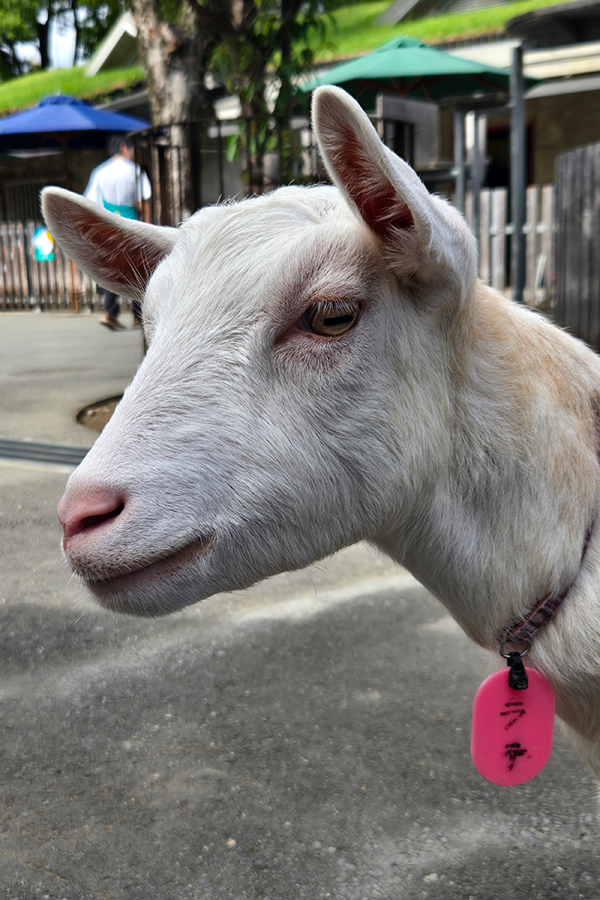 精悍な顔付きのラテちゃん(山羊)。