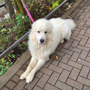 いつも此処に繋がれて、決して吠える事無くお利口さんに飼い主を待っているんです。可愛い💛
