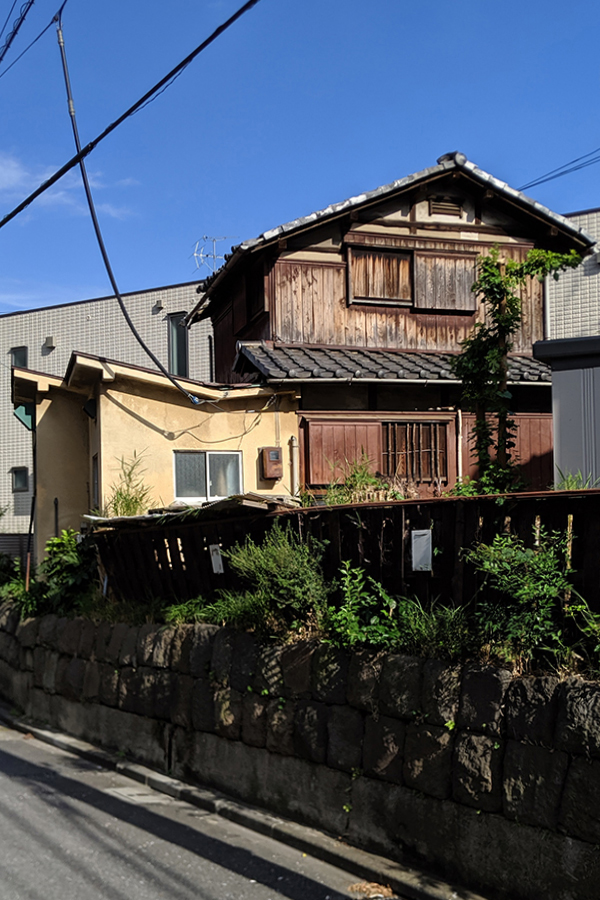 モルタル壁部分の屋根(おそらく増築部分)が逆勾配になっているのが面白いですね。