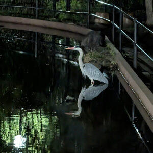 先日の夜桜見物の際、公園の池にて佇む青鷺(アオサギ)と遭遇。
