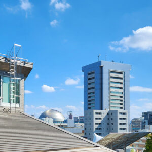 以前外観を御覧に入れた中央工学校1号館は、内部もコンクリートの柱や梁があらわしとなっており、