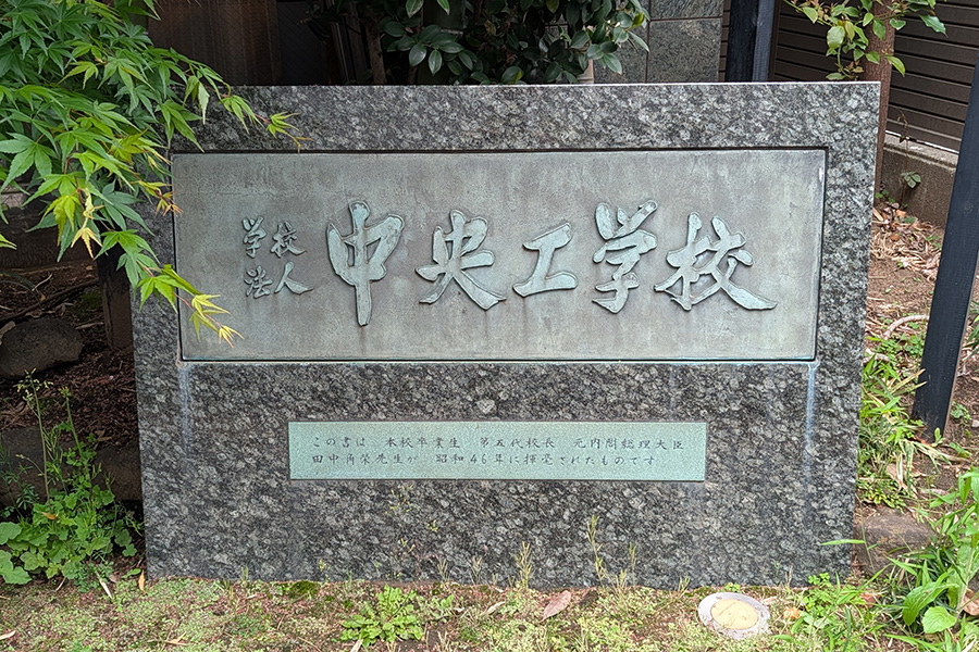 私が非常勤講師を務めている中央工学校の石碑。