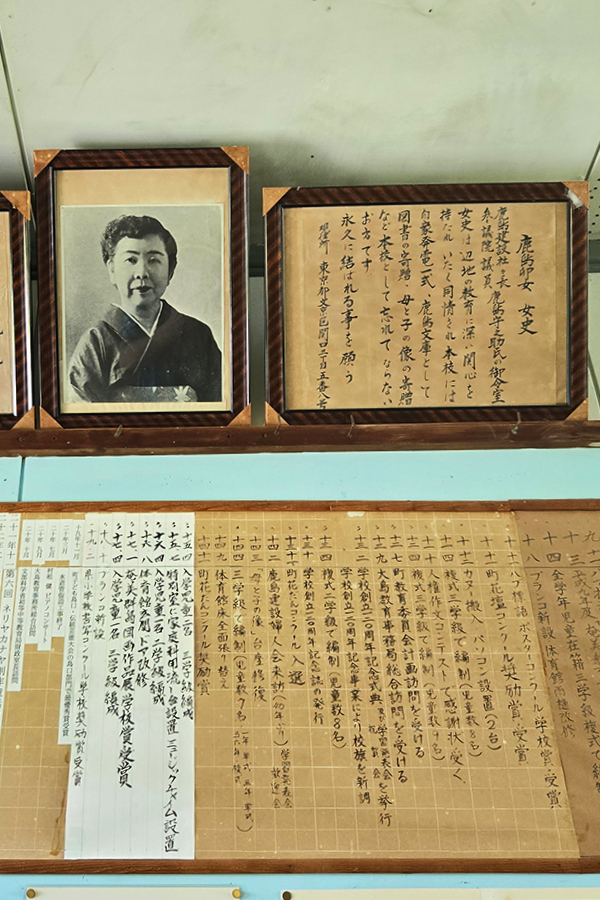 ラジオを聴いた当時の鹿島建設社長・鹿島卯女(かじまうめ)女史(上写真の方)が資金を援助し、校内に発電機を整備し視聴覚教育等の(電気を使う)授業が出来るようになったのだそうな。