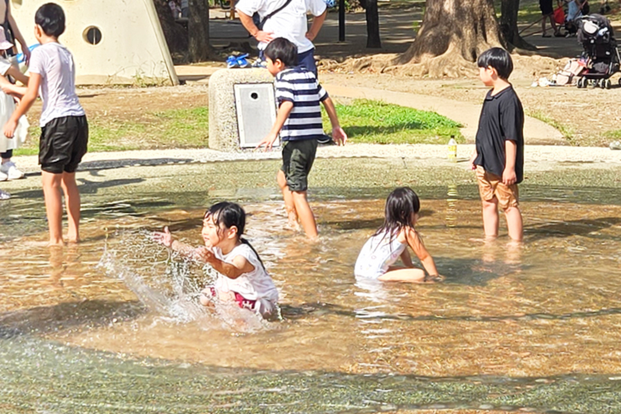 隣の東板橋公園では子供達が水遊び中。涼しそうで良いな~。