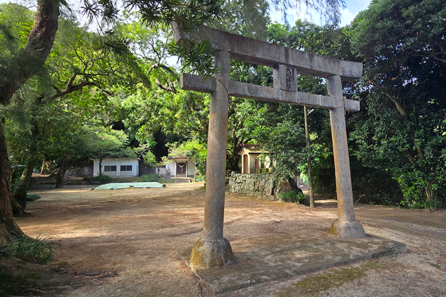 帰りの船まで時間が無いので、諸鈍(しょどん)シバヤ(芝居)の舞台となる大屯(おおちょん)神社を車の中から見学。