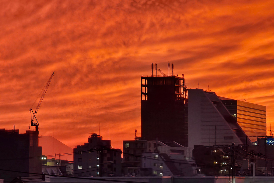 昨日の夕方、専門学校から帰宅して間も無く、東の空がいつもより綺麗に赤く染まっています。