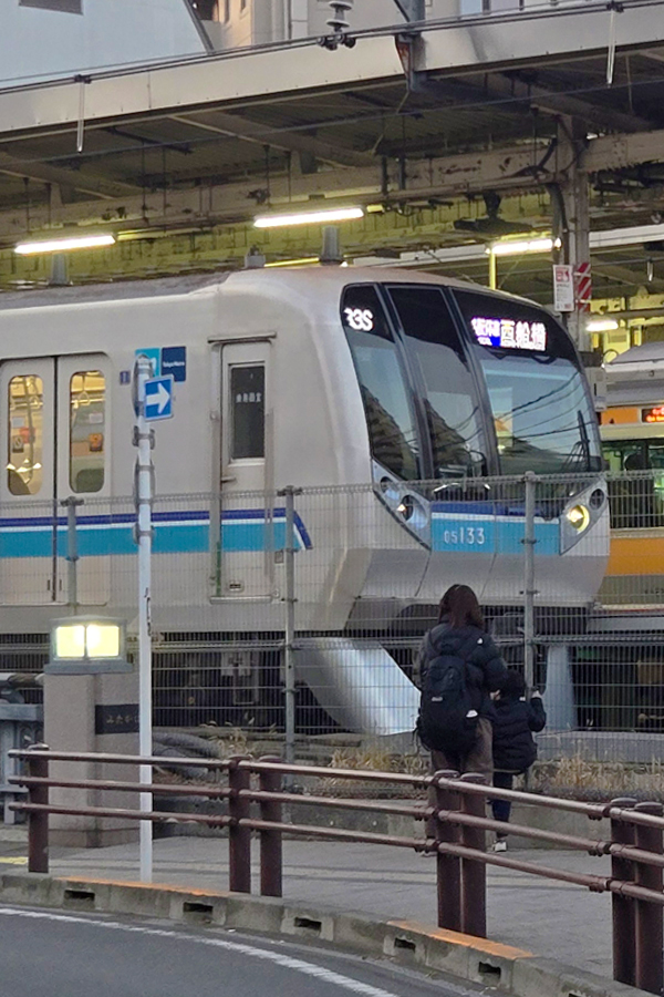 三鷹駅に停車中の東西線と其れをかぶり付きで眺めるお子さんとお母さん。