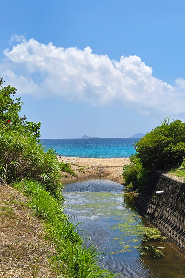 すぐそばを小川が流れています。河口から見る海も、これまた美しゅうございますね💛