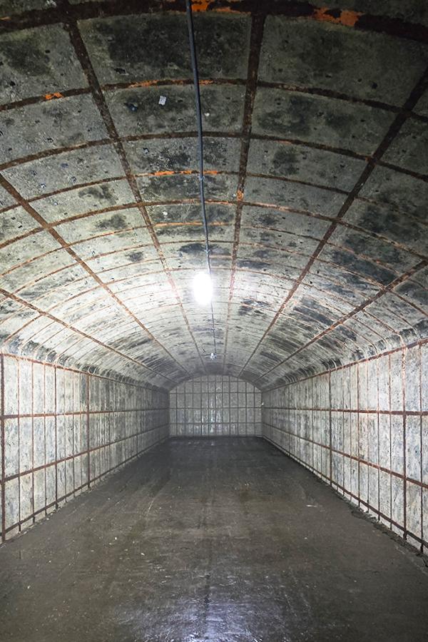 上述の通り、トンネルの中に入れ子状に鉄骨格子とコンクリートで作られた弾薬庫が存在します。