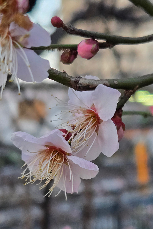 真冬の寒々しい景色の中、所々で咲く梅の花に魅せられます。
