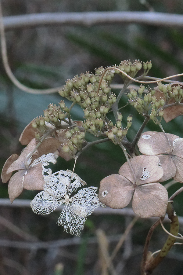 ドライフラワーと化した紫陽花(アジサイ)の花。