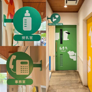 事務所棟のピクトグラム他も、とても良く出来ていて感心させられます。