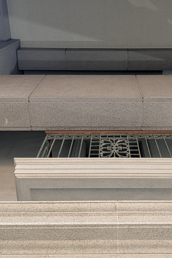 何故か階段だけが鉄筋コンクリート造である事、敷地隅に設けられた衝突防止ポールの過剰さが目を引きました。